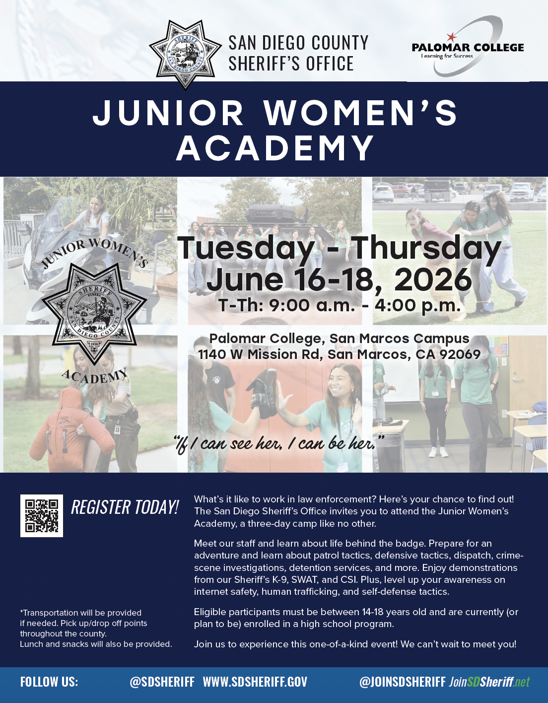 The Lemon Grove Substation is also proud to have a robust Senior Volunteer Patrol that handles a variety of community services and high visibility patrol throughout the city.