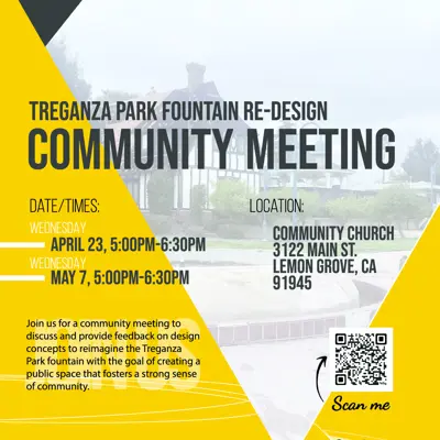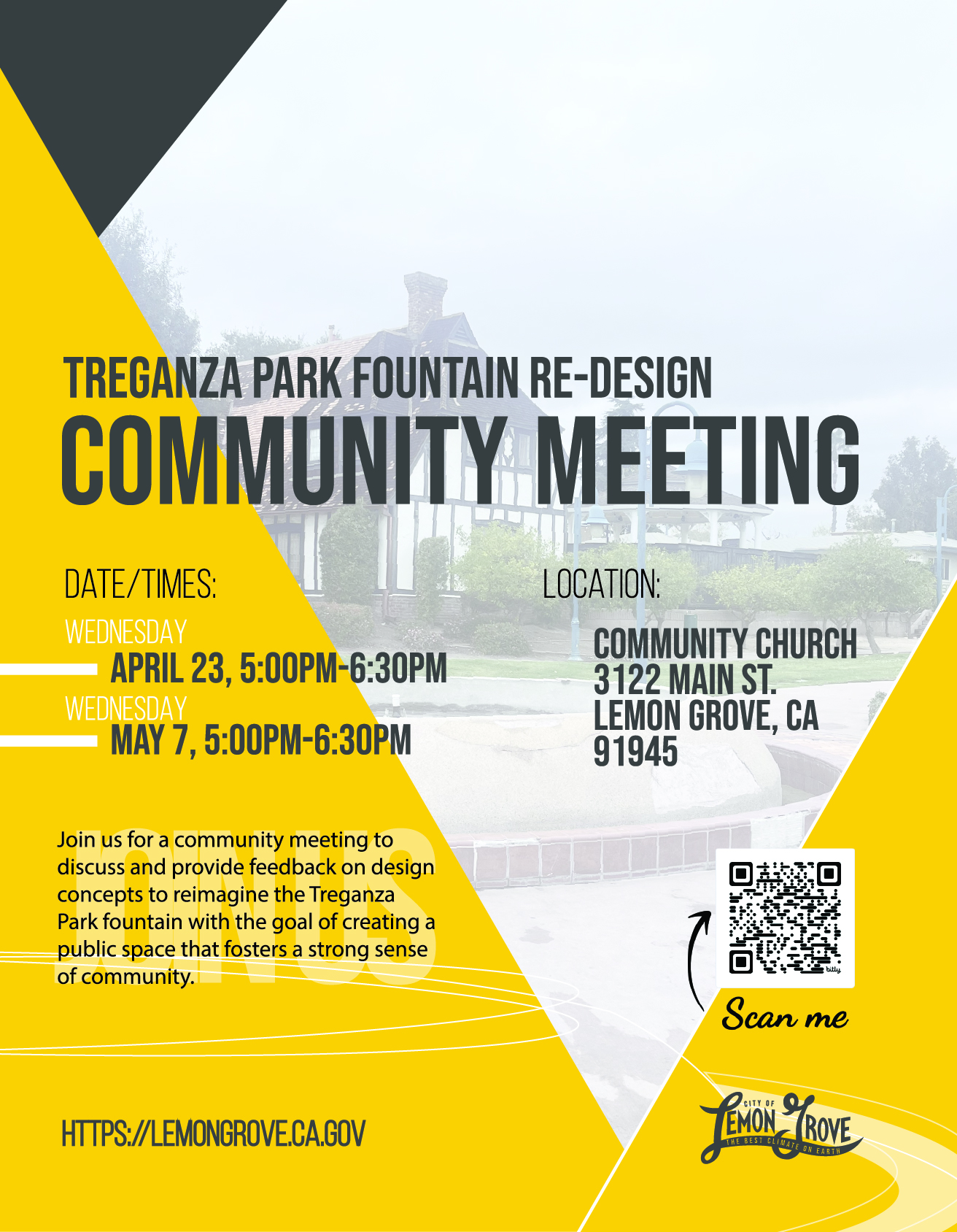The public space re-design project is located within Treganza Heritage Park, located at 3200 Main Street, Lemon Grove, CA 91945. Built in 2002, the 1.76-acre park has open green space, walking paths with lemon trees, a rose garden, community garden and two historical homes that double as museums. Treganza Heritage Park has a non-functioning fountain at the center of the park, which encompasses approximately 900 square feet. The fountain has been non-operational since 2016. The FY 2024-25 Capital Improvement Program (CIP) includes funding to re-design the space where the non-functioning fountain currently exists into a space the community can benefit and enjoy.